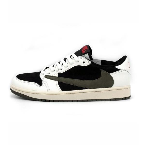 - NIKE ナイキ ×Travis Scott WMNS Air Jordan 1 Low OG Medium Olive DZ4137-106 スニーカー 白黒 Size 【27.5cm】 【新古品・未使用品】 20766529